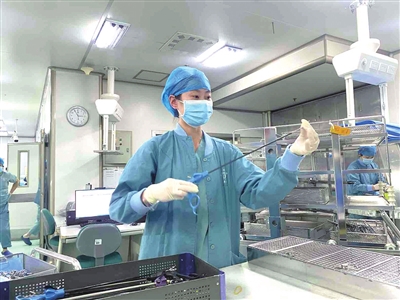 “消毒供应中心是医院内各种无菌物品的供应部门,它承担着可重复使用医疗器材的清洗、消毒、包装、灭菌和供应工作。”消毒供应中心护士长王淑娟向记者介绍。