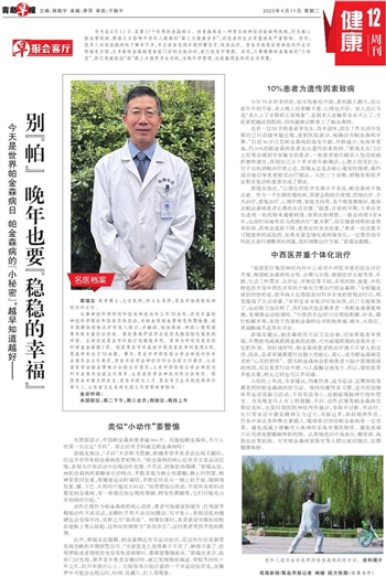 此外,郭瑞友还提醒,帕金森病还有非运动症状,而这些往往是最容易被忽略的早期预警信号。“当家里老人觉得鼻子不灵了、睡得不香了、经常便秘或者情绪改变容易焦虑抑郁时,都需要警惕起来。”郭瑞友表示,临床门诊发现,很多老年患者在确诊时,就已发现嗅觉减退、便秘等持续十年之久,但并未放在心上。比较容易引起注意的一个非运动症状是,在睡梦中可能会出现尖叫、吵闹、乱踢人、打人等现象。