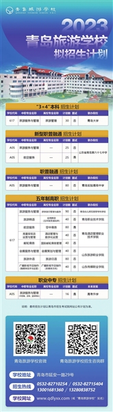 “适合的才是最好的”,青岛旅游学校秉承着“人本立校”的办学理念,以打造“省内领先、全国知名、具有国际影响力”的优质特色学校为发展目标,努力培养爱党爱国、技能娴熟、外语流利、气质优雅,具有国际视野,集服务型、技能型、创新型于一体的综合素质高、德技兼修、可持续发展的现代旅游业复合型人才。