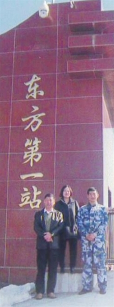 薛冰(中)与薛岱山(右)在雪岱山合影。