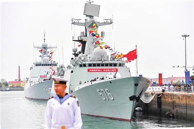 4月22日,中国海军在青岛港3号码头举行舰艇开放活动,导弹驱逐舰开封舰、导弹护卫舰大庆舰、综合补给舰可可西里湖舰和综合援潜救生船洪泽湖船分列码头两侧,悬挂满旗供市民参观。除大庆舰外,其余3艘舰艇均是首次向公众开放。连日来,共有1.6万名观众登舰参观。