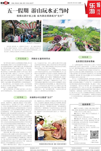 在众多旅游方式中,很多人选择适合全家出游的近郊游。踏青赏花、主题乐园、滨海游、乡村游、露营、采摘成为青岛五一游玩的“主打”选择。你可以去崂山、大珠山登山踏青赏杜鹃花;去中山公园赏樱花;去灵山玫瑰小镇赏玫瑰花;去西海岸观光园、羊毛沟花海湿地赏油菜花;去青岛世博园赏花踏青、放风筝;去红岛赶海拾贝。另外,青岛海底世界、方特梦幻王国、极地海洋公园、青岛森林野生动物世界等五一旅游热门景点也都准备了丰富多彩的内容迎接八方游客。