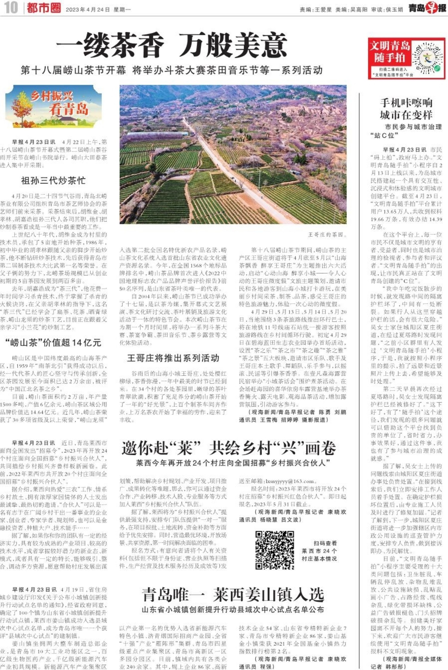 A01 头版 A02 划重点 A03 看见 A04 周一见 A06 周一见 A08 周一见 A09 强信心 稳经济 促发展 A10 都市圈 A11 暖新闻 A12 寻找身边的“微尘” A13 青岛面孔 A14 健康 A15 瞰青岛 A16 乐游
