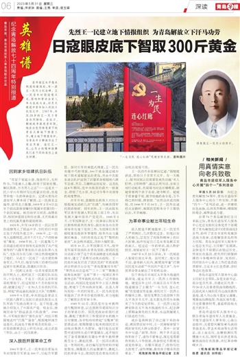 1941年春天,王一民率部在青岛火车站智取日军黄金300斤,引起日军震怒。面对日军的地毯式搜查,王一民在夹缝中巧妙周旋,300斤黄金通过城市地下排水道秘密运出青岛,并由中共胶东游击队护送到了沂蒙革命根据地八路军总部,其后,又辗转运往延安。这是抗战8年期间,党中央收到的最大一批黄金,得到了毛主席、朱总司令等中央领导的高度赞扬。