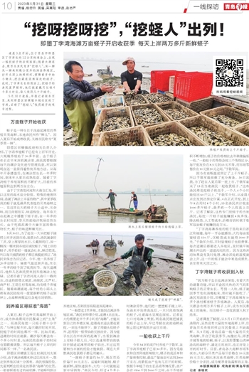 5月30日凌晨,早报记者驱车百里,来到即墨区田横镇丰城社区的丁字湾,目睹了“挖蛏人”收获蛏子的艰辛过程。