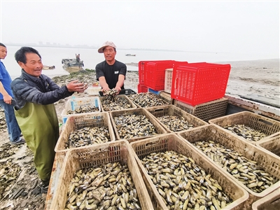 因为有商贩提前预订了上千斤蛏子,所以于敬军提前做了充分准备。30日凌晨,为了赶在入夏后第一批上市,于敬军雇来了13名当地渔民一起收获蛏子。“这些渔民都是挖蛏子的高手,一个人4个小时能挖出60斤以上。”于敬军介绍,从凌晨3点出发到达指定位置,4点正式开挖,到上午8点用时4个小时,13名渔民共计收获1000多斤蛏子,最多的一个人收获上百斤。记者了解到,这些专门挖蛏子的当地渔民,每挖一斤蛏子就能赚到4块多钱。除去蛏苗、人工等成本,价格好的时候于敬军每亩蛏子能赚到近万元。