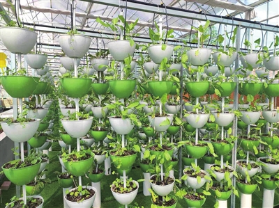 藏马镇石榴树下农业生态园的吊挂式栽培串盆。