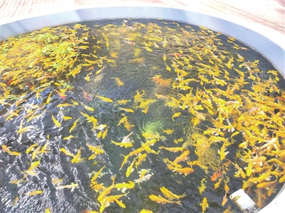 藏马镇石榴树下农业生态园的鱼菜共生鱼池。