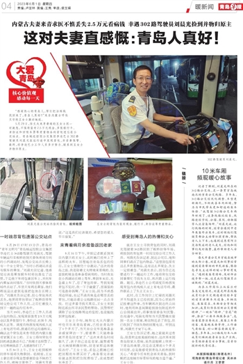 “感谢热心的青岛人,帮忙把治病钱找回来了,青岛人真好!”来自内蒙古呼伦贝尔的王女士激动地说。
