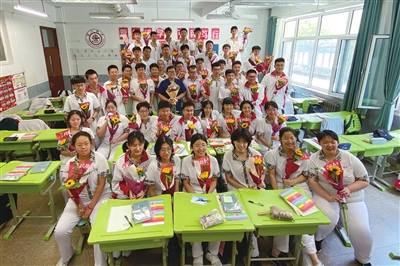 上完“最后一课”,青岛五十八中高三二班同学和班主任一起合影。