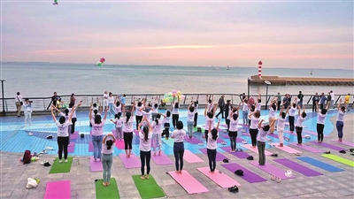 百人瑜伽派对放松身心。通讯员 董志刚 摄