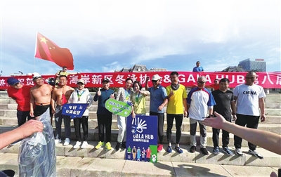 早报6月5日讯 6月4日,蛤蜊青年磁场(GALA HUB)联合西海岸冬泳协会开展的第八届“畅游竞赛”活动如期举行。现场,来自青岛西海岸新区的约50名游泳爱好者相聚唐岛湾,感受大海的清凉,挑战自我的极限。