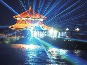 栈桥激光秀。观海新闻/青岛早报首席记者 孙启孟 摄