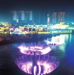 城市阳台景区的音乐喷泉秀。 观海新闻/青报全媒体记者 于滈 摄