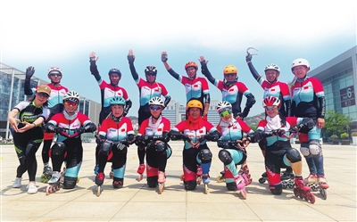 “现在,老年人的退休生活变得越来越丰富多彩。我们就是一群热爱冒险、喜欢挑战的老人!喜欢这项看起来有点危险的运动。”宋学惠擦拭着额头上的汗。盛夏,一层层防护装备穿戴上后,滑两圈就出汗出透了,但她依然热情满满地高喊着队员们,为他们完成的动作鼓掌加油,看着队员们进步,比她自己都高兴。“孙子11岁了,他练小轮,我们祖孙有时还会一起切磋切磋。”她说道。
