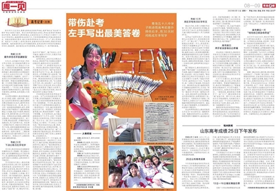 “强者从不抱怨环境。”“这么棒的女孩,未来一定光芒万丈。”“好有韧劲儿的小女子!”……6月12日,青岛早报以《带伤赴考,左手写出最美答卷》为题,独家报道了青岛五十八中高三女生韩诗雨的故事,引发强烈反响。值得一提的是,这条新闻被央视新闻、光明网等多家央媒转发报道,受到全网点赞。