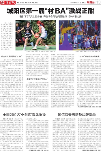 6月7日,农业农村部、体育总局联合发布通知,决定组织开展全国和美乡村篮球大赛(村BA)。作为全国首批全民运动健身模范区,城阳区在6月11日启动了全区第一届“村BA”联赛,吸引了城阳区以及周边区市的32支男子队伍和5支女子队伍参赛,将在5个多月的时间里进行150余场比赛。