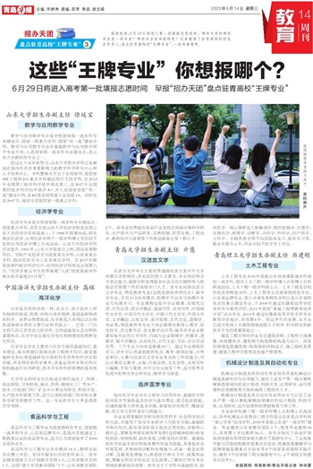 高考结束,6月29日将进入第一批填报志愿时间。哪所大学的哪些专业是一流专业?哪些专业是本校特色?记者邀请了驻青高校的招生办负责人,盘点驻青高校的“王牌专业”,一起来看看吧。