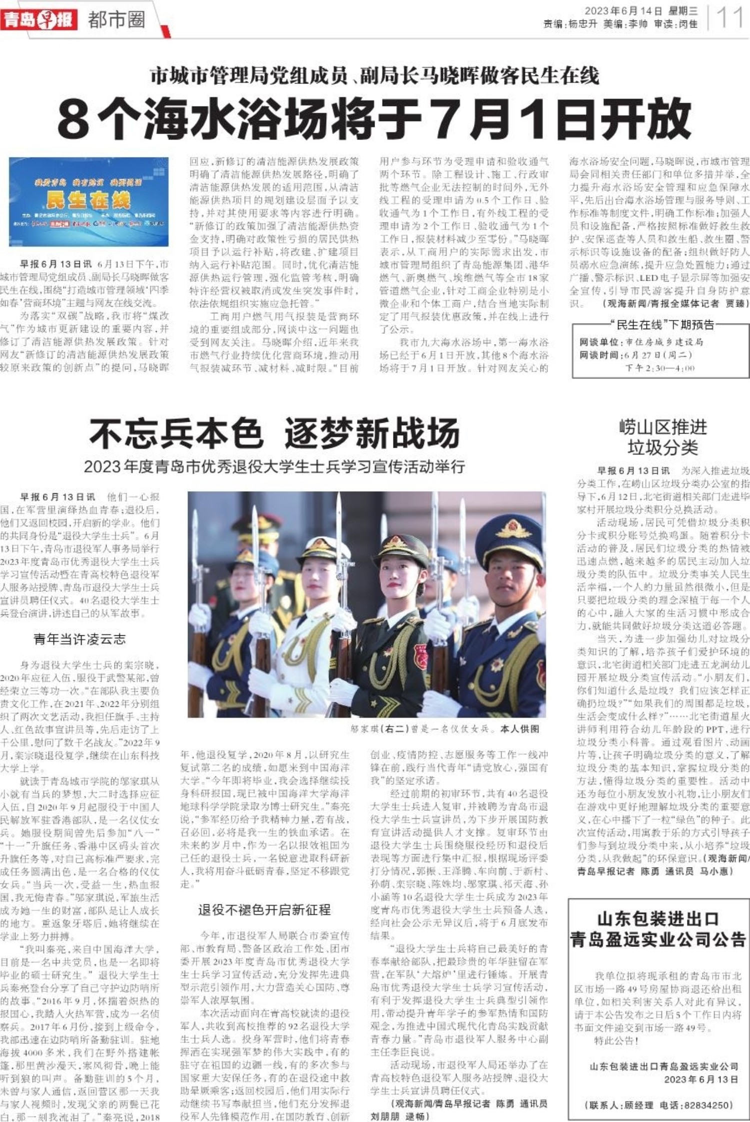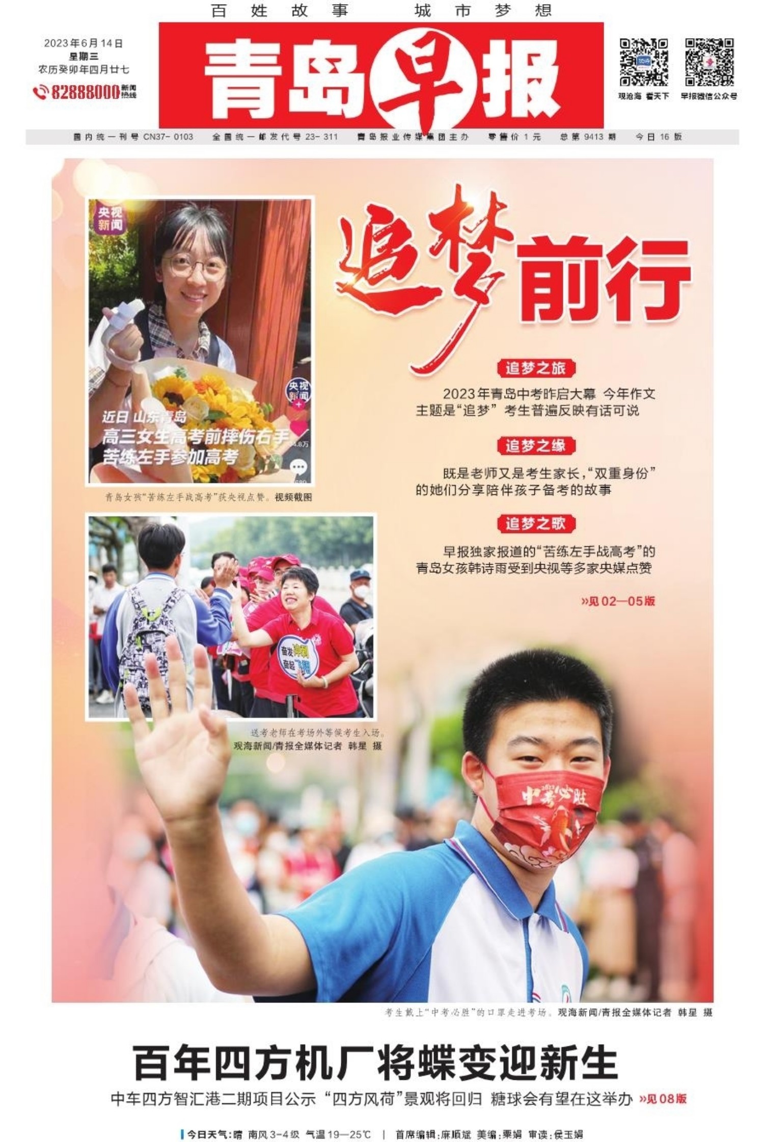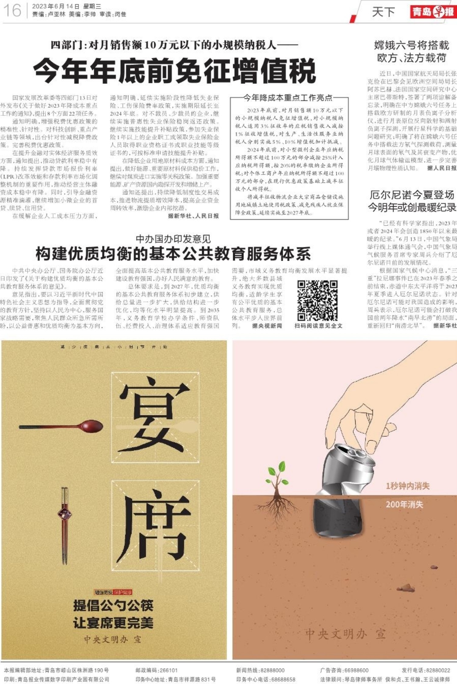 A01 头版 A02 教育 A03 教育 A04 教育 A05 教育 A06 青岛面孔 A07 打造乡村振兴齐鲁样板 A08 城市更新建设,让生活更美好 A09 深读 A10 身边事 A11 都市圈 A12 体育风周刊 A13 观赛台 A14 教育周刊 A15 校园 A16 天下