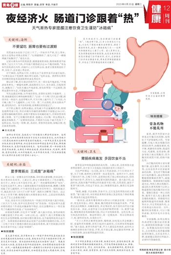 “不少人喜欢在夏季吃烧烤、喝啤酒,但吃得太多会刺激口腔、食道和胃的黏膜,容易引起消化道损伤,从而诱发胃肠道疾病。”姜大磊说,夏季炎热湿气重,不少人感觉没有食欲,此时吃点麻辣的食物有助于除湿、开胃,但不要过量,如过量食用辛辣、重口味的食物,会加重胃肠道的负担。