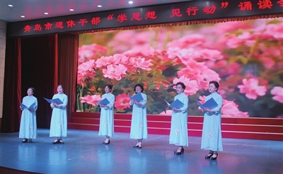 早报6月19日讯 近日,由青岛市委老干部局主办、青岛市老干部活动中心承办的青岛市退休干部“学思想见行动”主题诵读会在市老干部活动中心举行,来自各区市、市直单位的100余位老干部参加比赛。