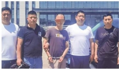 犯罪嫌疑人仪某(中)被城阳警方抓获。