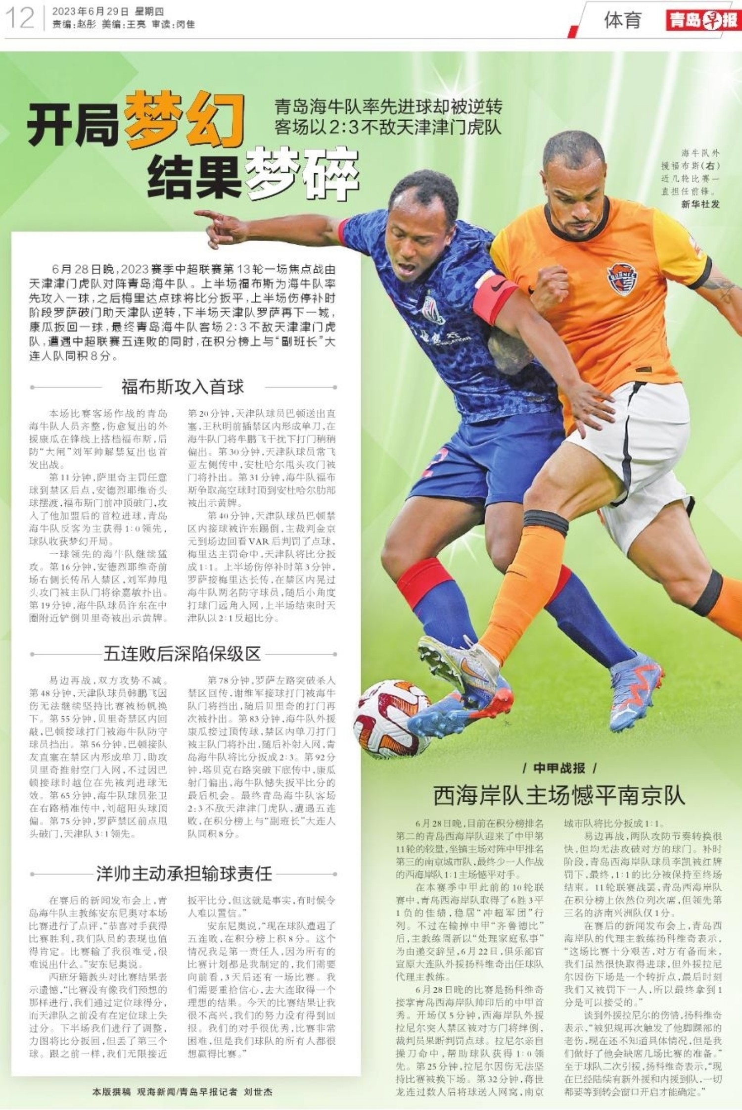 A01 头版 A02 蹲点报告 A03 深读 A04 今日看点 A06 2023东亚海洋合作平台青岛论坛 A08 城市更新建设,让生活更美好 A09 教育 A10 警戒线 A11 打造乡村振兴齐鲁样板 A12 体育 A13 悦读 A14 五月风 A15 地产 A16 业界