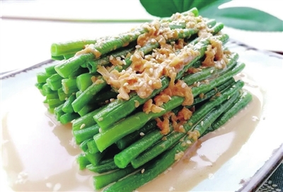 在北方,当下正是吃豆角的季节,不晒不腌,用麻酱汁拌着吃,清凉开胃,香浓脆爽。陈军令说:“这道菜是许多家庭夏天的家常菜,做起来十分简单。”煮好的豆角捞起,放入凉水中过上两遍,沥干水分备用。芝麻酱放入碗里,倒入30摄氏度左右的温水化开,用筷子顺一个方向搅拌,温水可以分2到3次倒入,芝麻酱搅到个人喜欢的稀稠度即可,建议调得稍微稀一些,太稠容易腻。大蒜去皮捣成蒜泥,放入搅好的芝麻酱里,再加入香醋、生抽、白糖、香油以及适量盐拌匀,做成麻酱汁。煮熟的豆角切成小长段,摆在盘子里,用勺子把麻酱汁均匀地淋在豆角上面,撒上少许熟芝麻,这道麻汁豆角就做好了。