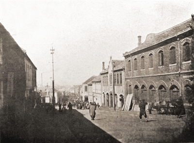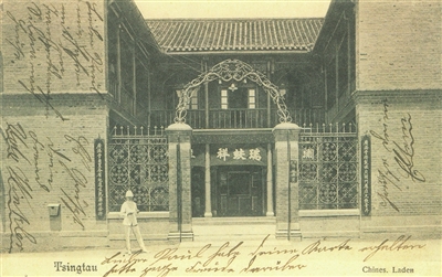 明信片中的清末青岛瑞蚨祥,位于今胶州路,王垿题写牌匾。