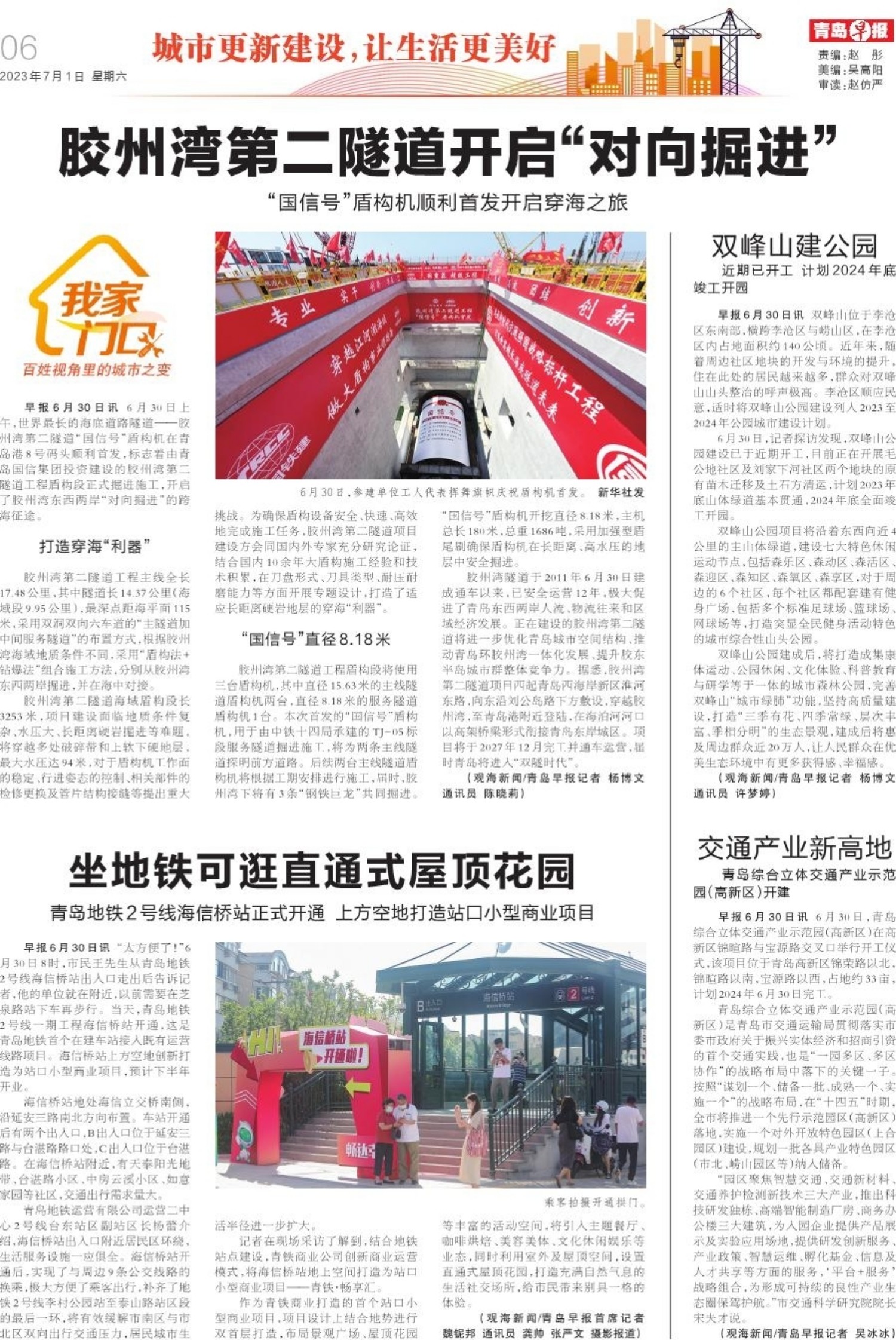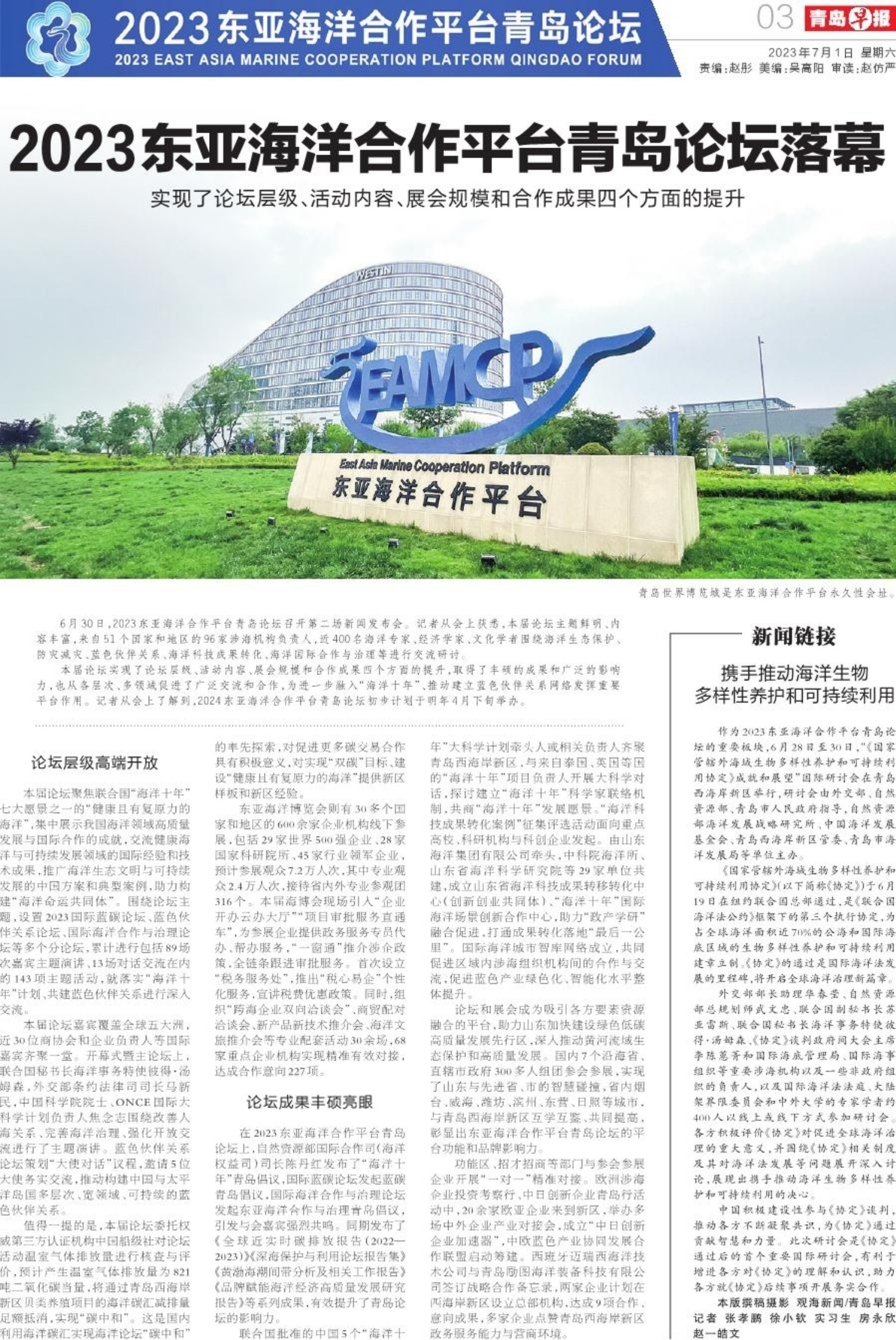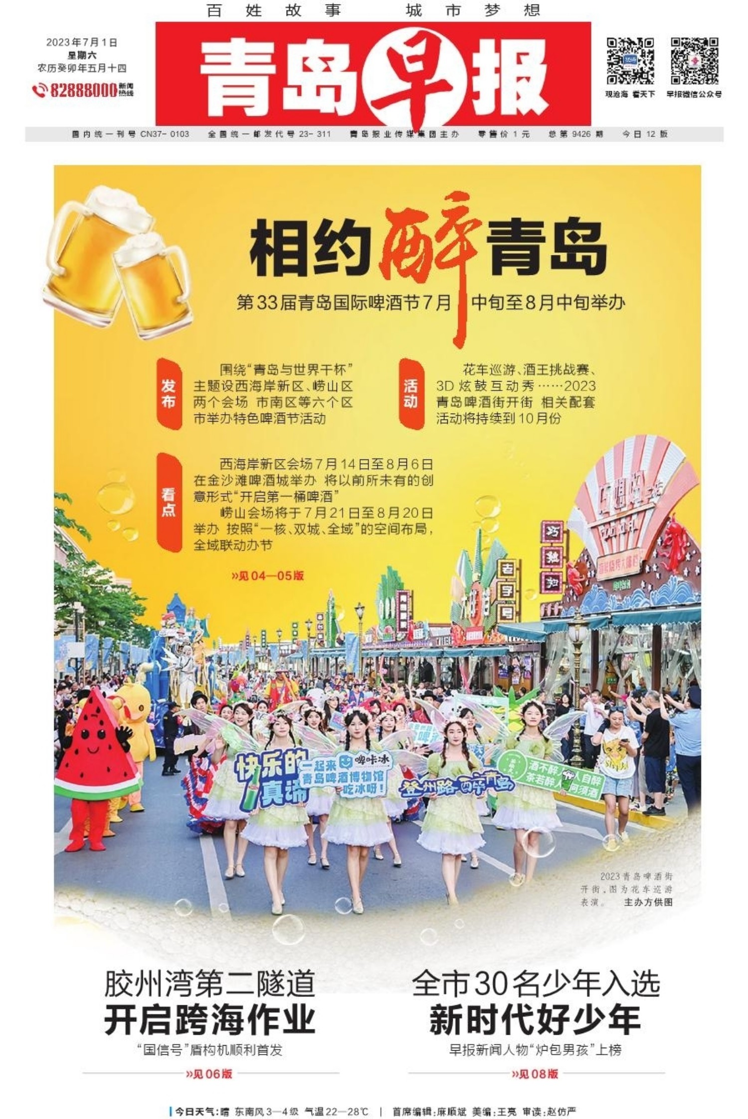 A01 头版 A02 要闻 A03 2023东亚海洋合作平台青岛论坛 A04 今日看点 A06 城市更新建设,让生活更美好 A07 一线探访 A08 暖新闻 A09 都市圈 A10 周末 A11 人文青岛 A12 文艺评论
