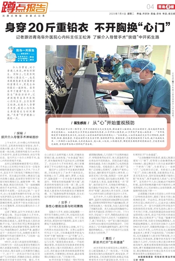 介入导管室,对于普通人来说,神秘而陌生。实际上,它是医院的核心堡垒之一,也是承载着患者及家属希望的重要关口,更是生命的最后一道防线。在青岛市卫健委“我当一天医生”体验活动中,记者跟随青岛阜外医院心内科主任、主任医师王松涛,走进介入导管手术室,感受心内科医生身披铅衣与时间赛跑,“负重”守护健康心跳的一天。