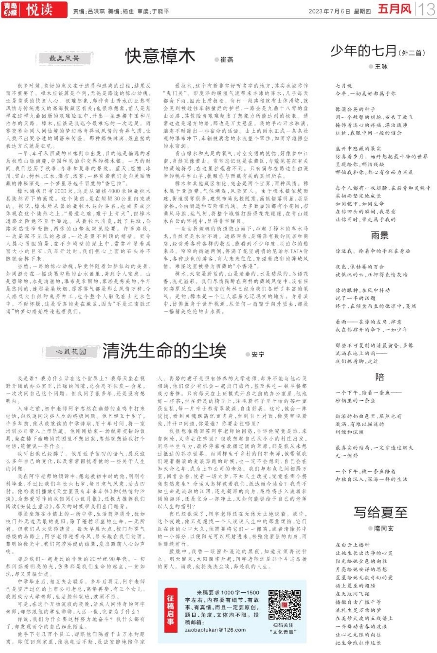 A01 头版 A02 今日看点 A03 青岛面孔 A04 深读 A05 蹲点报告 A06 发布 A07 打造乡村振兴齐鲁样板 A08 打造乡村振兴齐鲁样板 A09 都市圈 A10 身边事 A11 体育 A12 悦读 A13 五月风 A14 地产 A15 验房 A16 博览