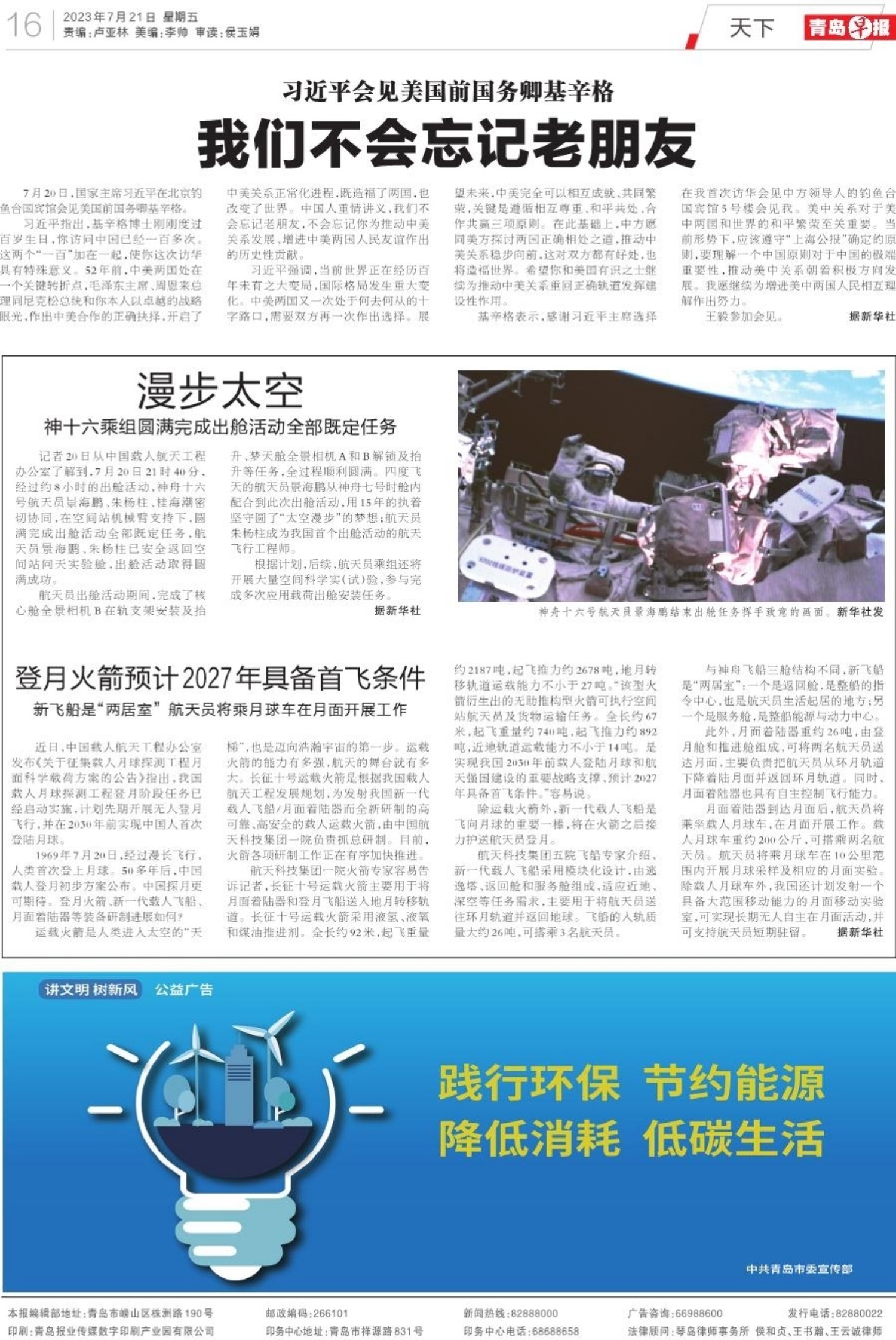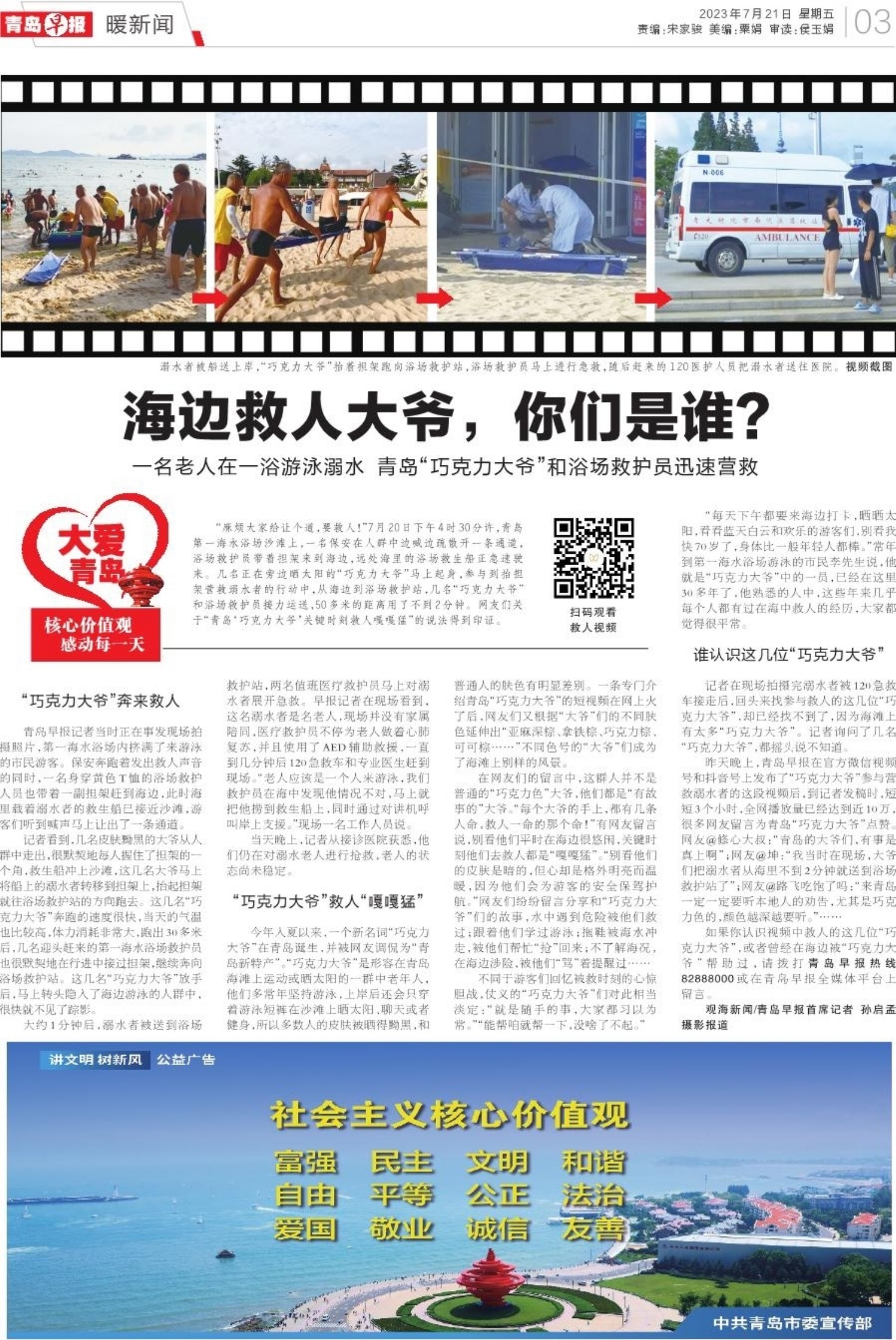 A01 头版 A02 暖新闻 A03 暖新闻 A04 蹲点报告 A05 青岛面孔 A06 今日看点 A07 与世界干杯 畅饮仲夏夜 A08 深读 A09 发布 A10 身边事 A11 荣军敬老 A12 财富汇 A13 理财 A14 星光岛 A15 文艺汇 A16 天下