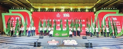 早报7月23日讯 7月22日,青岛啤酒成立120周年暨加力提速高质量发展大会在青岛国际会议中心举行。大会上,青岛啤酒国家重点实验室新基地竣工启用暨产学研创新平台升级启动仪式举行;“青啤绿 黄河美 基业青——黄河生态保护造林工程”战略合作签约;青岛啤酒产业链集群化发展投资项目集中签约,一系列项目落地,彰显了青岛啤酒开启全面建设世界一流企业时代新征程。