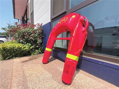 记者注意到,本次救援的这款水上机器人呈U形,长宽均为一米左右,通体呈橙红色。机器人的两边有把手,在执行救援任务时,落水人员双手扶着该把手,便可以被机器人带离危险水域。