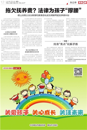 在以上两则案例中,离婚不享有抚养权的一方监护人怠于履行支付抚养费的义务和责任,崂山法院充分发挥法治智慧,找准矛盾“焦点”、降低冲突“燃点”,善用情理法做沟通引导工作,努力在法律框架下寻求最佳解决方案,取得了案结事了人和的效果。