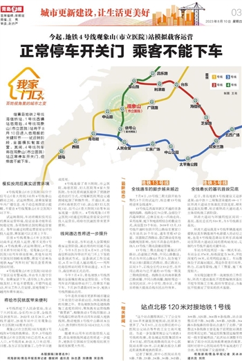 继青岛地铁2号线海信桥站、1号线西镇站启用后,4号线观象山(市立医院)站将于8月10日进入启用前的关键环节——试运转阶段,全面模拟载客运营。其间,4号线列车将在观象山(市立医院)站正常停车开关门,但乘客不能下车。