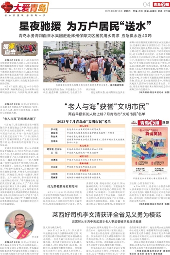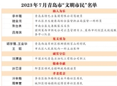早报8月9日讯 日前,市文明办公布2023年7月青岛市“文明市民”名单,共10人入选,其中包括李本强、王超两位早报新闻人物。