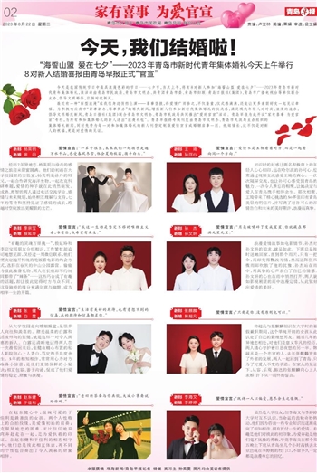 今天是我国传统节日中最具浪漫色彩的节日——七夕节,当天上午,将有8对新人参加“海誓山盟 爱在七夕”——2023年青岛市新时代青年集体婚礼,该活动由青岛市民政局、青岛市文明办、共青团青岛市委、青岛市妇联、青岛日报社(集团)、青岛市广播电视台等单位联合主办,倡导文明婚俗,弘扬时代新风。