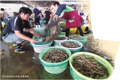 “南美白对虾已经开始收获了,价格不贵,很受市民喜欢。”常年经营鲜虾生意的董志欣介绍,南美白对虾分大棚养殖和大田养殖两种方式,一般春冬季大棚养殖的比较多。进入8月份之后,正是大田养殖的南美白对虾收获的季节,成为市民餐桌上的一道美味。