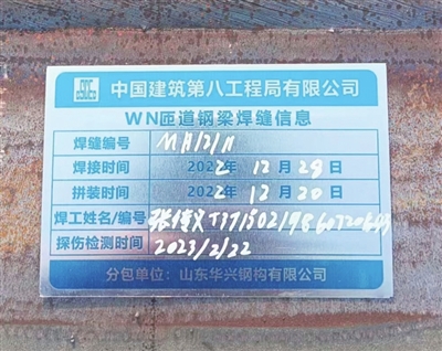 工程伊始,崂山区城市管理局牵头制定了钢箱梁优质目标,明确焊接质量要求,紧紧围绕施工质量这一核心,创新工艺工法,大力推行数字化技术。所谓焊缝“身份证”,即按照钢箱梁加工图纸,将每一道焊缝进行数字化编码,详细列明每条焊缝的焊接时间、焊工姓名、检测时间等关键信息,从而实现每一条焊缝都有源可溯,从细微处切实优化了工程质量“保鲜”技术。这看似简单的“身份证”,却是我市首次在工程施工中采用,它使长期困扰工程的焊缝质量溯源问题得到了有效化解,也充分展现了“数字化新基建”背景下,崂山区对工程质量的把控智慧。