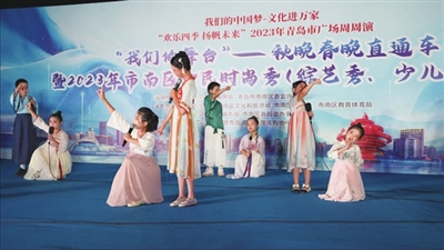 早报8月21日讯 20日晚,“我们的舞台——秋晚春晚直通车”暨2023年市南区全民时尚秀少儿才艺秀决赛在金茂湾后海广场举行。