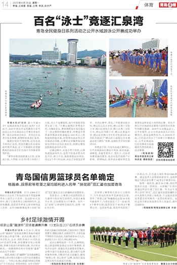 早报8月27日讯 最小年龄6岁!岛城游泳高手竞逐汇泉湾!8月26日,2023年青岛市全民健身日系列活动之公开水域游泳公开赛在青岛市第一海水浴场成功举办。共有近百名选手报名参赛,挥臂斩浪竞逐汇泉湾。