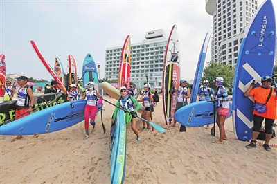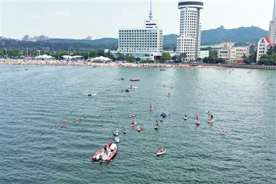 参赛选手们在汇泉湾畅游。