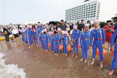 李勇进介绍,与室内泳池比赛相比,公开水域游泳比赛由于风浪、海水流速、清晰度、水温等差异大、变化大,对泳者有着更高的要求,也会对选手成绩产生影响。即便如此,很多游泳爱好者还是更喜欢这种亲近大自然的比赛。青岛开展公开水域游泳有着得天独厚的自然条件和群众基础。2008年北京奥运会上,公开水域男、女10公里游泳成为正式比赛项目,青岛也顺势而为,从2008年开始,已经成功举办了7届青少年横渡活动,公开水域游泳已经发展成为岛城颇有代表性的海上运动赛事。