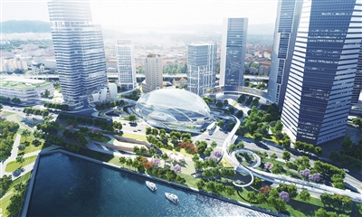 作为市北美丽海岸线又一地标性建筑,后海的又一颗“璀璨明珠”,启动区“世界之眼”项目自规划以来就备受关注。“世界之眼”位于青岛国际邮轮港区启动区核心区023地块,即港极路以南、陵县支路以东、港青路以西、港平路以北围合区域。该项目占地面积约1.4万余平方米,地上建筑面积2.9万平方米,建筑高度为38米,共5层,单跨跨度最大可达90米。根据规划方案,该项目将以青岛源文化中心和“世界之眼”集散中心形成的空间和功能为核心,以滨海景观轴串联创新文化消费片区、购物餐饮片区、商务办公片区、邮轮旅游片区和创新居住片区五大片区,并构建七条港城融合廊道连接港区与老城区,形成“两心五片一轴相串,七脉通道缝合港城”的规划结构。“世界之眼”在港区的地位可见一斑。