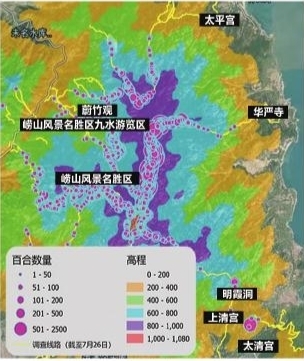 青岛百合野生植株(种群)精确定位。