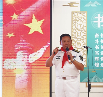 从无到有,从弱到强,从小艇到巨舰,从近海到远海,从浅蓝到深蓝。74载不懈奋斗,人民海军正向着全面建成世界一流海军阔步前行。活动现场,青岛市军休干部志愿宣传团成员、海军原某部队政委刘长敏进行了“致敬英雄”主题宣讲,他结合自身服役期间多次随舰艇编队赴太平洋、印度洋执行远航作战训练和出访任务的经历,向学生们介绍了海军三大舰队、五大兵种。