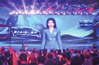 虚拟主持人“海蓝”与大会主持人双向互动。