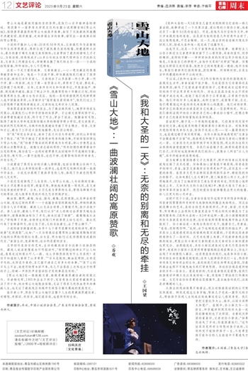 话剧不同于小说,后者往往在创作过程中有所隐含和保留,而前者则需要将所有的针头线脑统统抖搂出来给观众。而且话剧是舞台的艺术,是综合的艺术表现形式,声音、画面、灯光等等,所有舞台上出现的元素甚至是台下观众的反应都是为了主题所服务的。《我和大圣的一天》中有这样一幕,孙小新模糊感觉到孙大圣就是爸爸孙达胜,这时爸爸即将要彻底离开他去天国报到了。孙小新站在一束亮白色的灯光下,抱着自己,哭着说:“爸爸,我好想你啊。”此刻,台下也响起此起彼伏的抽泣声。演员在台上是能感觉到这些情感的真实流露的,于是将这段表演特意抻长了一段时间。从艺术处理上来看,不仅能够表现出情感的延宕,更能让孙小新对父亲的爱以及父亲对孙小新的爱表达更充分。话剧结尾处,当孙小新沉浸在对父亲无尽思念的伤痛中,他家的小猫孙小花突然带着猫妈妈出现在舞台上,但也只出现了片刻便隐入幕后。这里意在告诉我们,也在告诉孙小新,所有的生命交集都是短暂的,没有人能够陪伴我们一生,那些匆匆而来又匆匆而去的生命,虽然给我们的生命带来过喜悦,但最终离去也将不可避免地为我们带来伤痛。而这恰恰就是爱所暗含的另外一层含义。爱是美好的,无论是亲情还是爱情,在我们的潜意识中都只关注其美好的一面,而忽略了带给我们伤痛的一面。文艺作品恰恰是要将这层膜揭开,直白地告诉我们,这就是赤裸裸的人生。